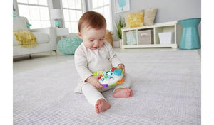 Your baby can get into the gaming fun with this Laugh & Learn toy video game controller, which features two "gaming" modes and lots of hands-on activities! As little gamers move the joystick and press the ABCD and number buttons, they'll hear exciting songs, sounds, and phrases that introduce numbers, shapes, colours, and more!