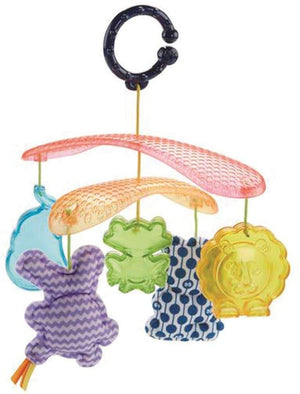 Every trip in the stroller becomes an exciting adventure with the On-the-Go Stroller Mobile from Fisher-Price. Five friendly animal toys dangle overhead, facing little ones and encouraging them to reach for and bat at their colourful pals. As the sun shines through the modern mobile arms, its bright light can sparkle on the translucent elephant, froggy and lion toys, catching your baby's eye. Oh, hey guys! Closest to your baby's reach are the soft panda with a rattle and monkey that jingles, with fun, textured fabrics for tiny hands to grab and explore. When you've got places to go, simply attach the mobile to the stroller canopy with the convenient link and you and your tiny explorer are ready to roll! Where development comes into play: Sensory: Bright colours, patterns, friendly animal faces and the gentle movement of the mobile stimulates your baby's visual senses. Gross Motor: The overhead mobile encourages little ones to reach for and bat at the toys, helping to strengthen developing gross motor skills.
