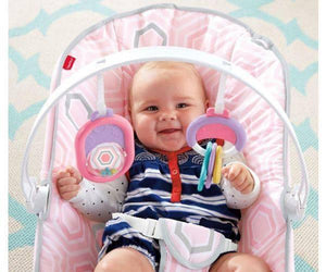 Featuring a new modern design, the Fisher-Price Rainforest Friends Comfort Curve Bouncer is soothing and entertaining for baby.