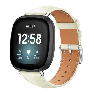 Fitbit Versa 4 / 3 / Sense 2 / Sense 1 Fine Grain Leather Watch Band - Creamy White