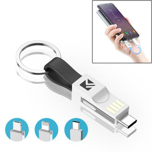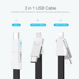 FLOVEME 3 in 1 USB to 8 Pin + Micro USB + USB-C / Type-C Magnetic Charging & Data Cable with Keychain