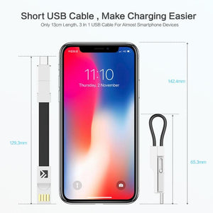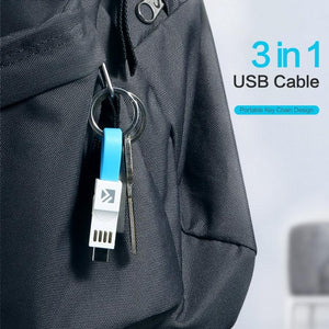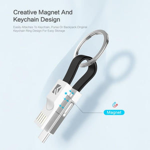 FLOVEME 3 in 1 USB to 8 Pin + Micro USB + USB-C / Type-C Magnetic Charging & Data Cable with Keychain