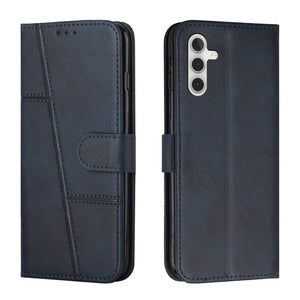 Samsung Galaxy A16 5G Stitching Calf Texture Buckle Leather Phone Case Cover - Blue