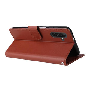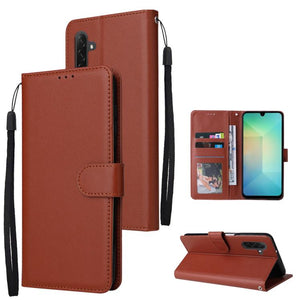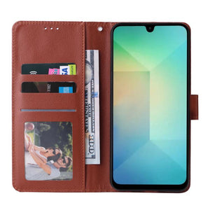 Enhance the functionality and style of your Samsung Galaxy A26 5G with this premium leather phone case. Designed with practicality in mind, it features three card slots, allowing you to conveniently carry your essential cards. The multifunctional design ensures your phone is protected with a touch of elegance, while the brown leather finish adds a classic look. Perfect for those who value both style and utility.