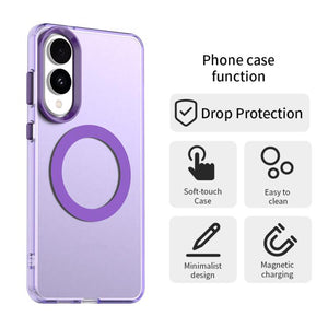Protect your Samsung Galaxy S25 Edge 5G with this stylish and functional candy magsafe phone case. Designed with a hybrid of PC and TPU materials, this case offers robust protection against scratches, drops, and impacts while maintaining a sleek profile. The vibrant purple color adds a touch of elegance, and the magsafe feature ensures easy and secure attachment of compatible accessories.