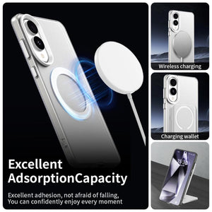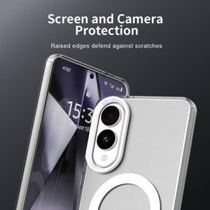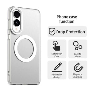 Protect your Samsung Galaxy S25 Edge 5G with this sleek and durable Candy Magsafe PC Hybrid TPU Phone Case. Designed with precision, this case offers robust protection while maintaining a slim profile. The hybrid design combines a hard PC back with a flexible TPU bumper, providing excellent shock absorption and grip. With MagSafe compatibility, enjoy seamless wireless charging and effortless accessory attachment. The elegant white finish adds a touch of sophistication to your device, making it both stylish and functional.