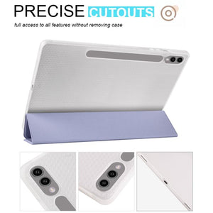 Samsung Galaxy Tab S10 FE / S9 3-Folding Transparent Smart Leather Tablet Case Cover with Pen Slot - Lavender