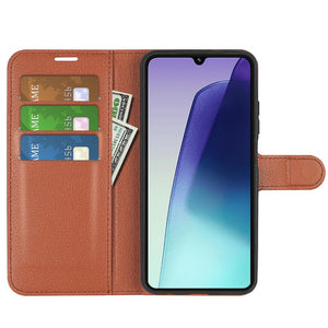 Xiaomi Redmi 14C 4G Litchi Texture Flip Leather Case Cover with Holder - Brown