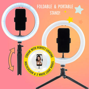 - The 26 cm ring light boasts three different white light modes and a multi-coloured function so users can stream with optimum lighting.