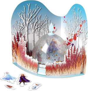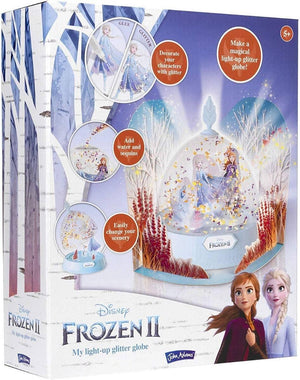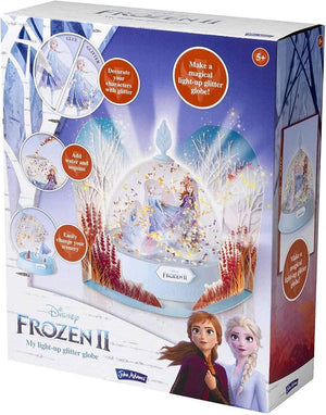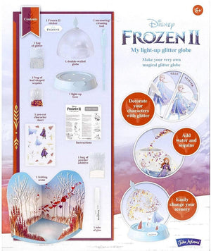 Make a magical Disney Frozen II light up glitter globe. Build the background scene, decorate your characters with glitter then add water and sequins. It's magical as the sequins float and your globe lights up!