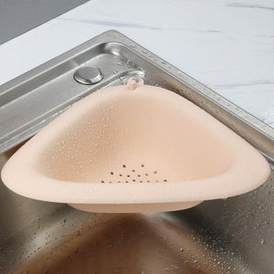 Fruit Vegetable Cleaning Draining Triangle Storage Basket Sink Multifunctional Tableware Sponge Wipe Rack (Light Pink)