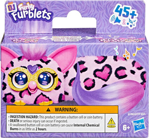 Furby DJ Furblets Kitt-Ee-Luv Mini Electronic Plush Toy with Funny Stretchable Sound Effects & Music, Speaks Furbish, Pink Cheetah Print, Christmas Stocking Stuffer Gifts