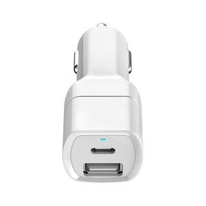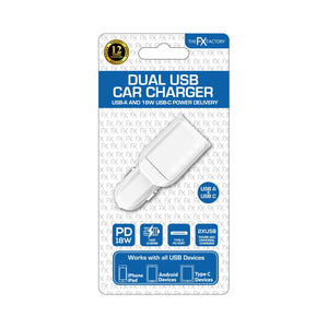 FX Car Charger Dual USB (2.1A) with Power Delivery (18W) -White, 1 x USB, 1 x USB-C / Type - C