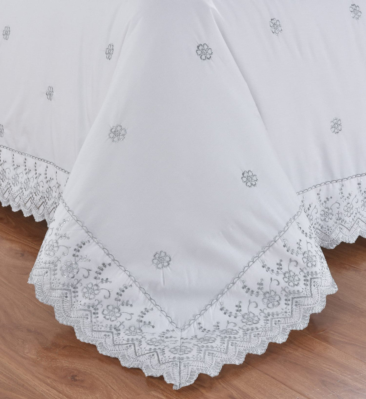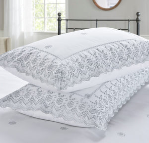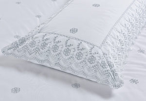 An exquisite collection of timeless bed linen, our Gabrielle design embodies delicate beauty and sophistication. Adorned with intricate floral embroidery and elegant lace trim, this bedding set creates a serene and graceful atmosphere, transforming your bedroom into a haven of classic charm and comfort.