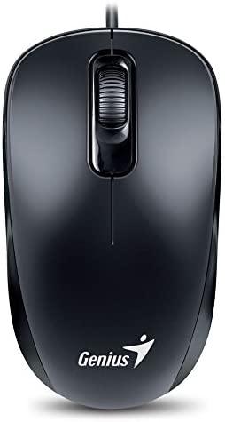 Genius Wired USB Plug and Play Mouse, 1000 DPI Optical Tracking, 3 Button with Scroll Wheel, Ambidextrous Design with 1.5m Cable, Black