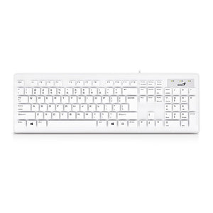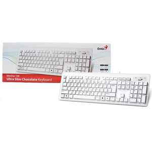 Genius SlimStar 130 Wired Keyboard, USB Plug and Play, Spill resistant, Full Size UK Layout with Low Profile Chocolate keycap Keys, Slim Design for Home or Office, White