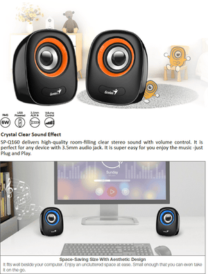 SP-Q160 delivers high-quality room-filling clear stereo sound with volume control. It is perfect for any device with 3.5mm audio jack. It is super easy for you enjoy the music - just Plug and Play.
