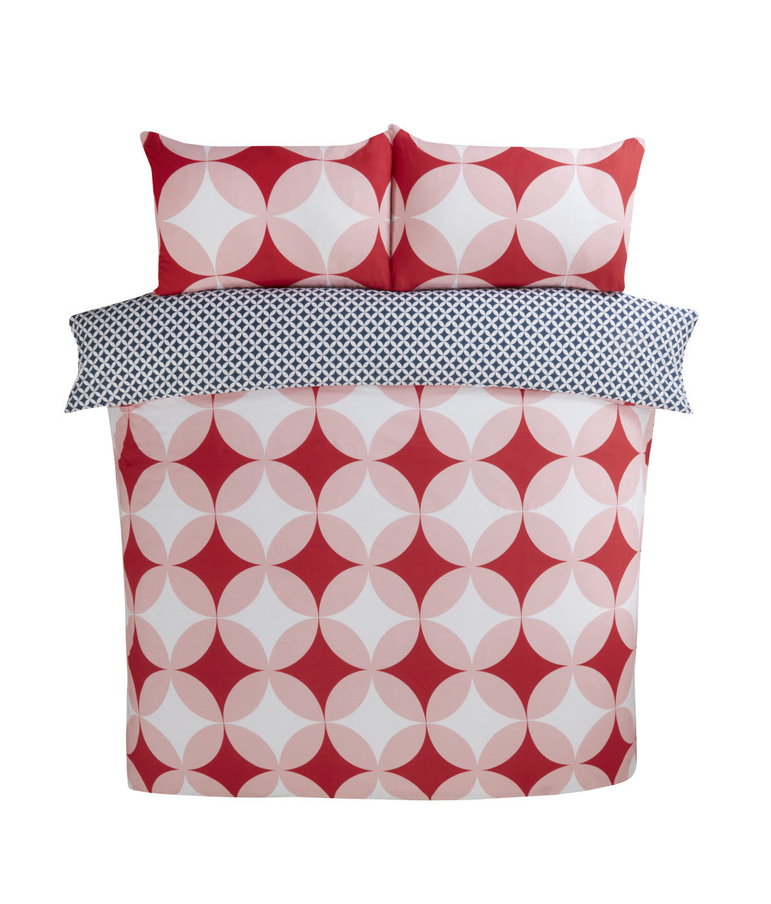 Geo Polycotton Duvet Set With Pillowcase Double Red