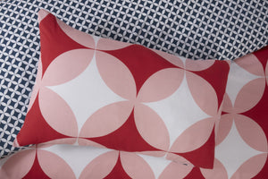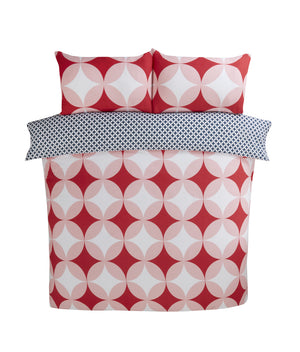 Geo Polycotton Duvet Set With Pillowcase King Red