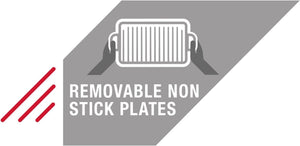 Removable Cooking Plate for Easy CleaningNo one enjoys washing up the grill after a party. With the non-stick coating on the removable cooking plate, the grease and grime can simply be wiped off in the sink making cleaning up quick and easy. |