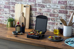 George Foreman is your mealtime friend, designed to help you out in the kitchen and grill up seriously tasty food. The Small Fit Grill’s Smaller Footprint saves space without compromising on performance, where time and space is tight. The Space Saving Design also makes storage simple, without sacrificing on the size of the grill plates. In a Shiny Black with Matt Finishes, this Small Fit Grill will look great in any kitchen and help you eat well more often.