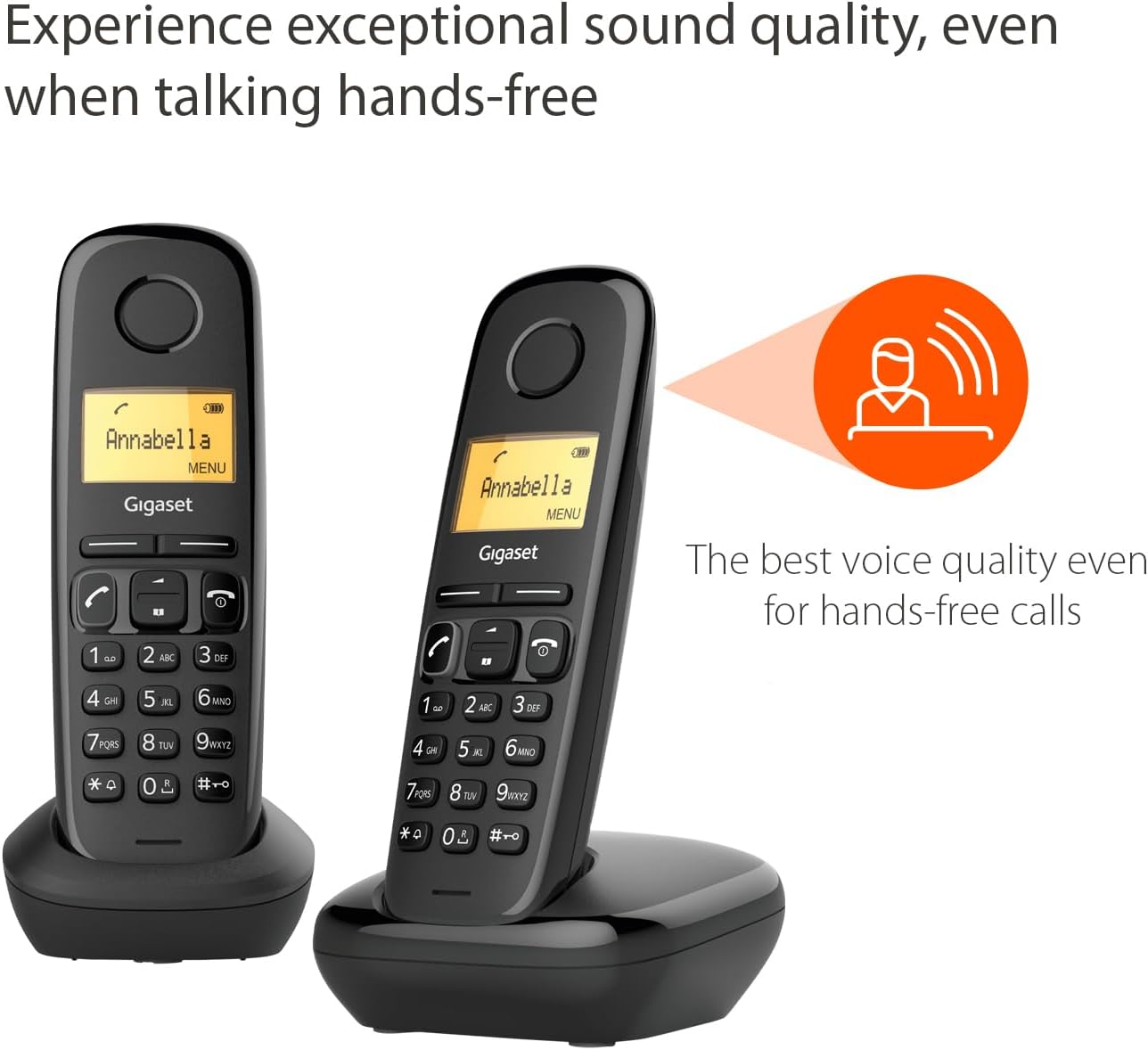 Gigaset A170 Duo - Two Handsets - Cordless DECT Telephone - Illuminated Graphic Display - Simple Installation, Black
