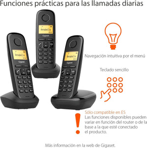 Gigaset A170 Trio - Three Handsets - Cordless DECT Telephone - Illuminated Graphic Display - Simple Installation, Black