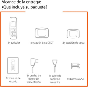 - SCOPE OF DELIVERY - 1 base station Gigaset A170, 3 handsets Gigaset A170H, 1 charging cradle, 3 Plug in power adaptor, 1 phone connection cable, 4 AAA rechargeable batteries (NiMH), 1 battery compartment cover, 1 user manual.