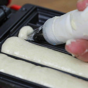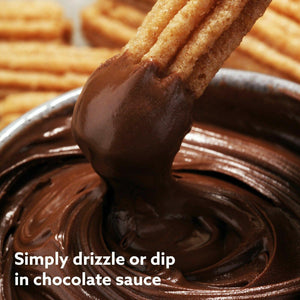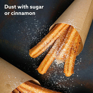 This unique and dynamic churros maker is the perfect kitchen appliance that will revolutionise your breakfast or dessert menu both at home and on the move. This thermostatically engineered churros maker allows you to bake delicious fresh churros at the drop of a hat. Just add you own toppings to customise the perfect bake! The flexibility of this churros machine allows you to flip it 180° mid-bake to ensure an even dispersion of batter to make the perfect churros. The non-stick cooking plates make cleaning a breeze, and the rubber feet that are attached allow for the machine to stay rigid throughout the baking session. The thermostatic churros maker allows for the churros to be cooked at the perfect temperature, and the cool to touch handle ensures there’ll be no hot tempers in the kitchen! The device comes complete with a piping bag, ensuring that you’ll easily be able to fill the moulds with your pre-prepared batter.