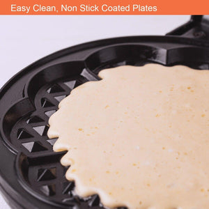 From Global Gizmos comes the perfect kitchen appliance that will have you making fresh and healthy mini waffles in the simplest way. This unique mini heart-shaped waffle maker ensures the perfect waffle every time. It’s quick and easy to use, and the non-stick coating plates make it a stress free clean. The thermostatic sensors ensure a golden-brown bake each time. With rubber feet on the base of the device you can ensure the machine won’t be moving when in use. The mini waffle maker measures 25cm long x 22cm wide, giving it its space saving design and allowing for simple storage post use. Suitable for both breakfast meals and unique after dinner treats.