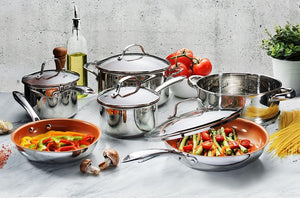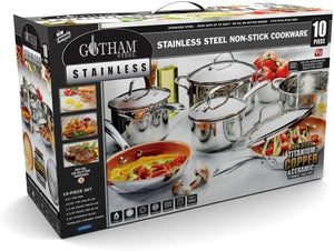 Gotham Steel 10 Piece Pro Chef Cookware Set Premium Copper Nonstick Pots and Pans– Tri-Ply Bonded, Coated with Titanium and Ceramic Surface for the Ultimate Release - Dishwasher Safe, Stainless Steel
