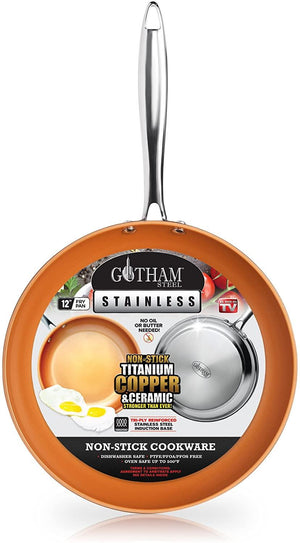 Gotham Steel 12" Stainless Steel Premium Frying Pan Triple Ply Reinforced with Super Nonstick Ti-Cerama Copper Coating and Induction Capable Encapsulated Bottom – Dishwasher Safe