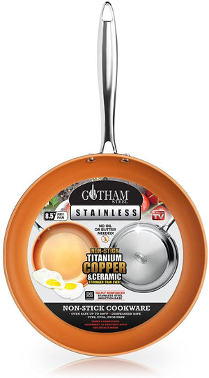 Gotham Steel 8.5" Stainless Steel Premium Frying Pan Triple Ply Reinforced with Super Nonstick Ti-Cerama Copper Coating and Induction Capable Encapsulated Bottom – Dishwasher Safe