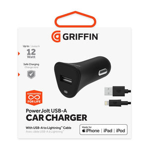 Griffin GP-135-BLK Single Port 2.4A USB Car Charger with Lightning Cable Black