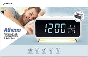 Groov-e Athena Alarm Clock with Wireless Charging Pad & Night Light White