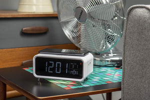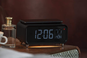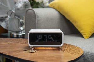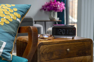 Alarm clock with a built-in 5W wireless charging pad and dimmable night light. The Groov-e Athena is a bedside alarm with a difference.
