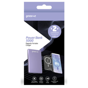 Groov-e Power Bank 5,000mAh Portable Magnetic Wireless Charger - Lilac