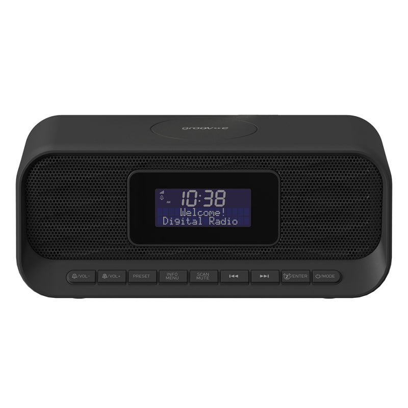 Groov-e Zeus DAB/FM Clock Radio with Wireless Charging Pad & Bluetooth Black