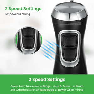 - Turbo Boost – Select from two speed settings & activate the turbo boost for an extra surge of power