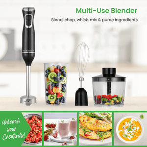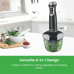 Discover the ultimate versatility with this multi-functional 4-in-1 blender. Complete with chopper, whisk, bowl, and beaker accessories, it allows you to blend, chop, whisk, mix, puree, and so much more.
