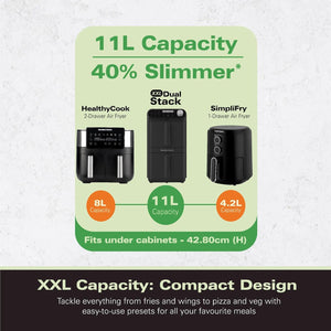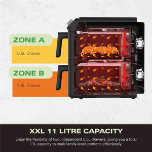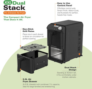 - 11L Dual Drawer Capacity: Enjoy the flexibility of two independent 5.5L drawers, giving you a total 11L capacity to cook family-sized portions effortlessly.