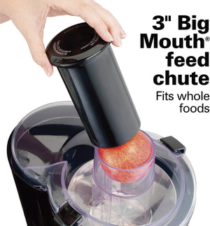 The Hamilton Beach Big Mouth Plus 2 Speed Juice Extractor makes juicing easy. The 3 inch mouth saves time by eliminating the need to precut most fruits and vegetables.