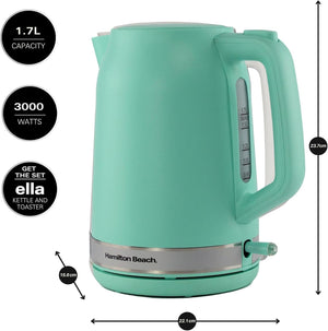 Hamilton Beach Electric Kettle, Ella, 1.7L, Boil Dry Protection, Auto Shut Off, Detachable Filter, Lift & Grip Handle, Push Button Lid, Water Level Window, UK Strix Technology, Matte Mint