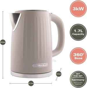 Hamilton Beach Electric Kettle, Harmony, 1.7L, Rapid Boil, Boil Dry Protection, 360° Swivel Base, Removable Limescale Filter, Illuminated Indicator Light, Cappuccino