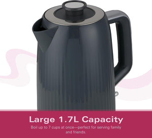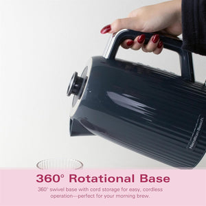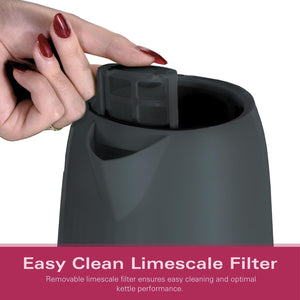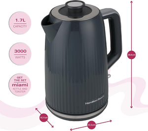 Hamilton Beach Electric Kettle, Miami, 1.7L, Boil Dry Protection, Auto Shut Off, Detachable Limescale Filter, 360° Swivel Base, Water Level Window, Charcoal Grey