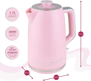 Hamilton Beach Electric Kettle, Miami, 1.7L, Boil Dry Protection, Auto Shut Off, Detachable Limescale Filter, 360° Swivel Base, Water Level Window, Flamingo Pink