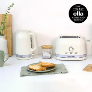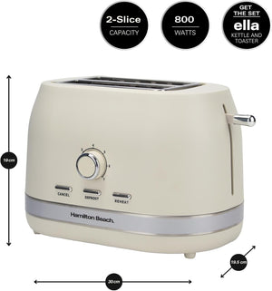 Hamilton Beach Toaster 2 Slice, Ella, 800W, Wide Slots, 7 Variable Browning Levels, Defrost, Cancel & Reheat Settings, Removable Crumb Tray, Integrated Cord Storage, Matte Cream Toaster