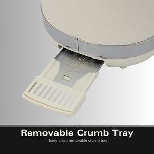 - REMOVABLE CRUMB TRAY – Features a removable crumb tray for easy cleaning, along with integrated cord storage to keep your worktop tidy and organised.