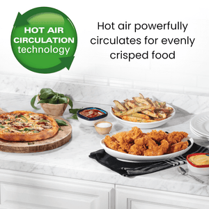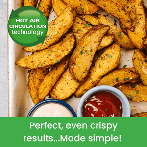 Save on your energy bills with the innovative Hamilton Beach SimpliFry 4.2L Manual Air Fryer. This 4.2L capacity air fryer will make cooking simple. Fry, roast and even bake with ease, the manual control dials for the 60 minute timer and temperature control from 80-200°C you can be sure that your food will be cooked perfectly every time! Featuring overheat protection and non slip feet, this air fryer was made for both convenient and safe cooking.