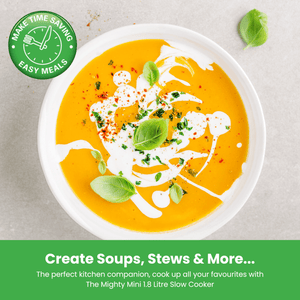 There’s nothing better than coming home to a delicious dish that has been simmering all day… The Mighty Mini is a compact and energy-efficient slow cooker that makes cooking easy and enjoyable. With its powerful 90W heating element, it’s perfect for couples and individuals looking to effortlessly enjoy delicious home-cooked meals.